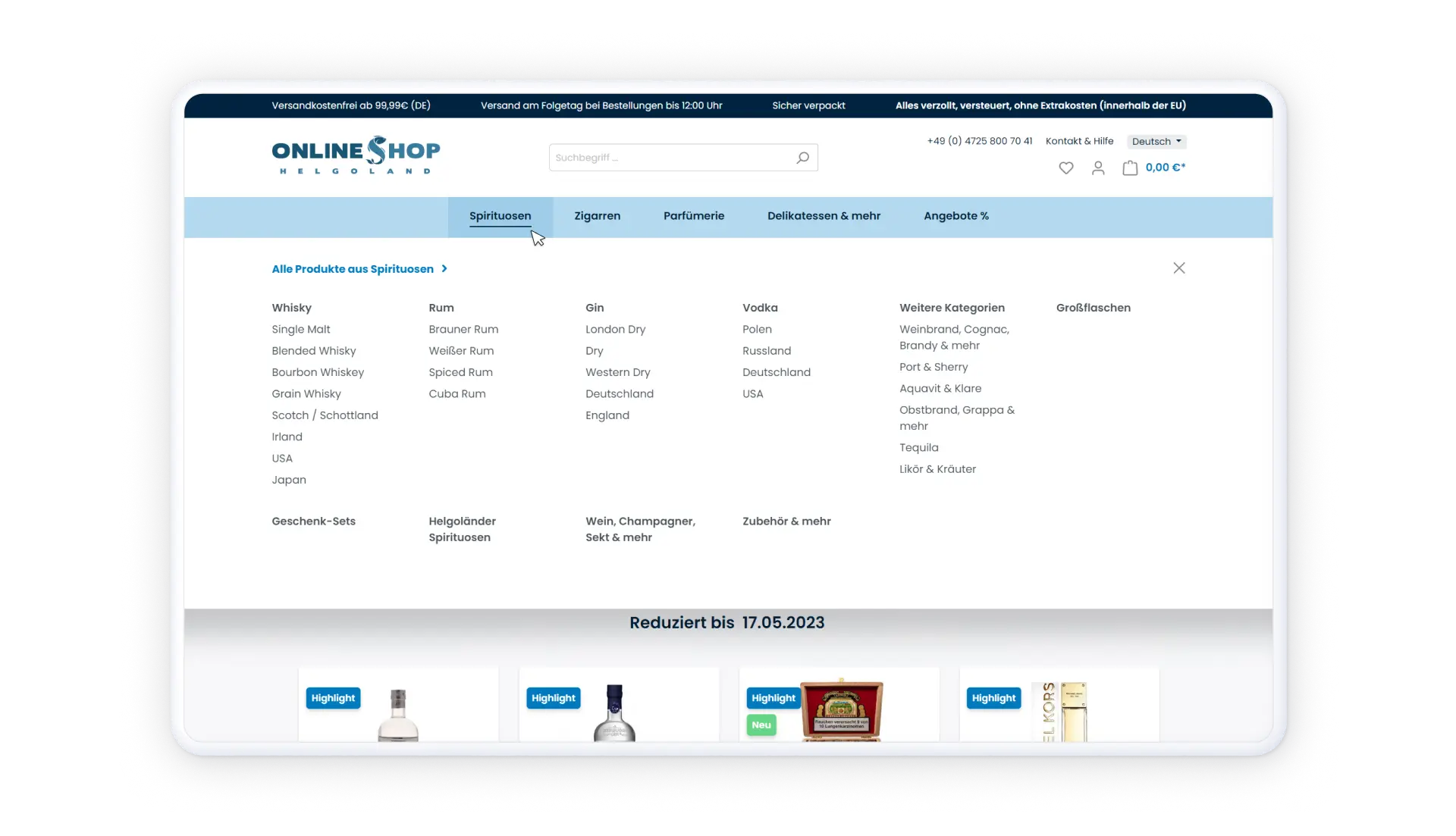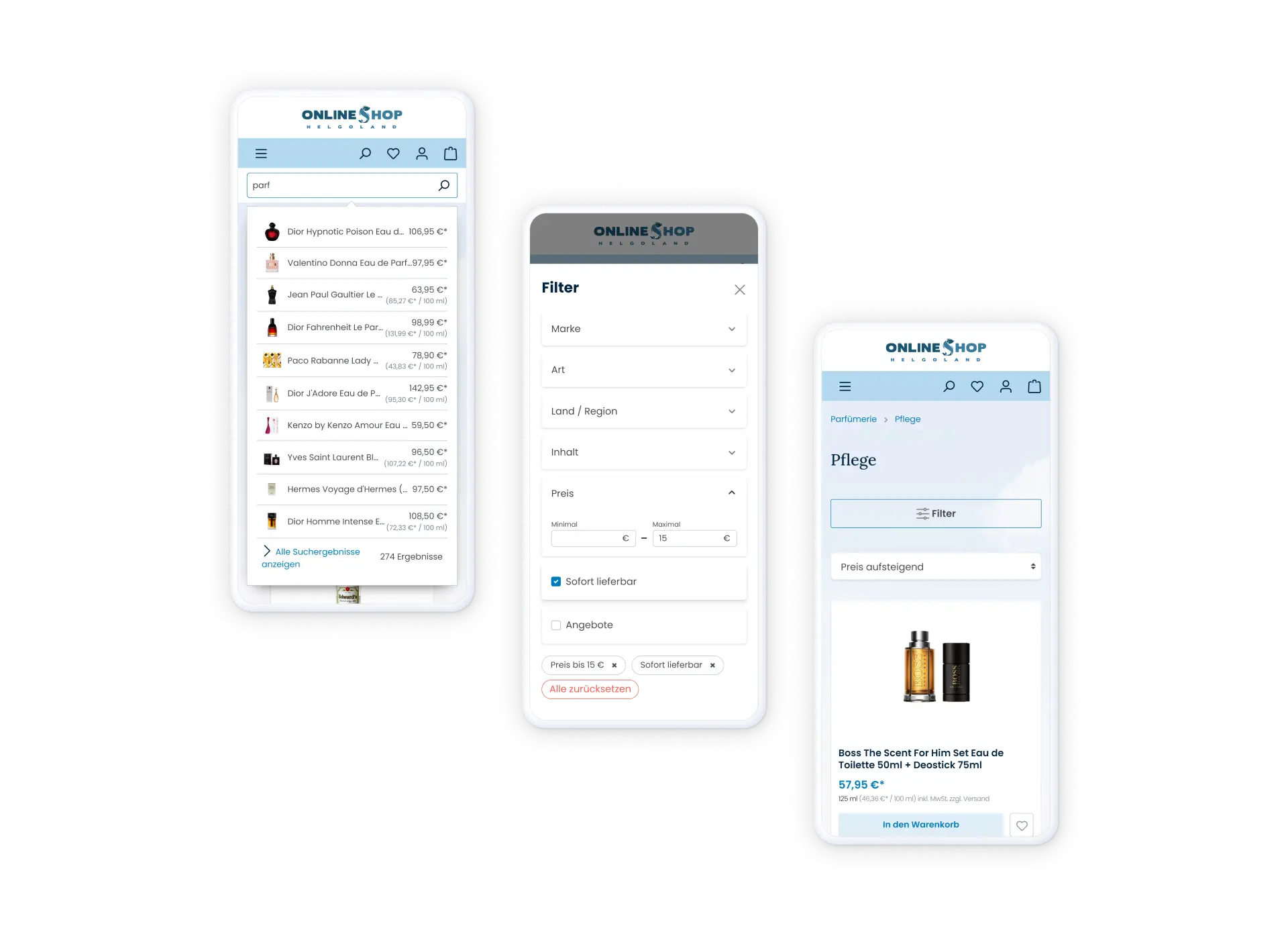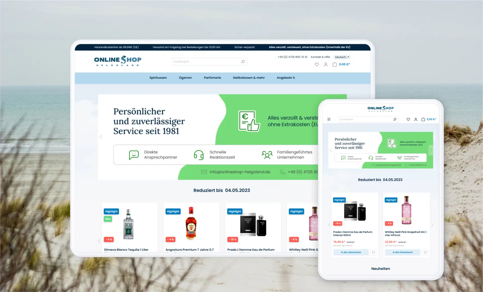 Dabei wurde der Fokus für den Relaunch auch auf einen neuen Anstrich, die Anreicherung der Produktinformationen und damit die Steigerung der Sichtbarkeit in Suchmaschinen gelegt. Der Kunde sollte zukünftig die Möglichkeit haben, eine übersichtliche Darstellung der Produktvarianten zu erhalten und diese nach ihrer Verfügbarkeit filtern zu können. Der Wunsch der Helgoländer war es außerdem, durch Automatisierungen, bspw. bei der Zollanmeldung, den manuellen Arbeitsaufwand zu reduzieren.